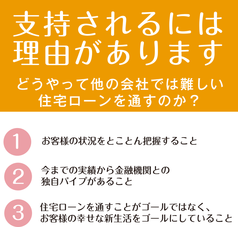 住宅ローンの相談は、全て無料でございます。 お客様ごとの、資金計画や住宅ローンを通すための戦略立案についても無料でございます。 |